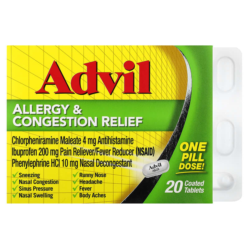 Trong cuộc sống hàng ngày, chúng ta thường phải đối mặt với các triệu chứng khó chịu do dị ứng, cảm lạnh hay viêm mũi. Sản phẩm Advil Allergy & Congestion Relief 20 Coated Tablets của hãng Advil là một giải pháp hiệu quả giúp giảm nhẹ những triệu chứng này, mang lại sự thoải mái cho người sử dụng.