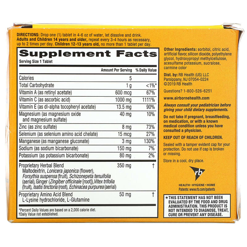 Sản phẩm AirBorne Immune Support Supplement Very Berry bao gồm: