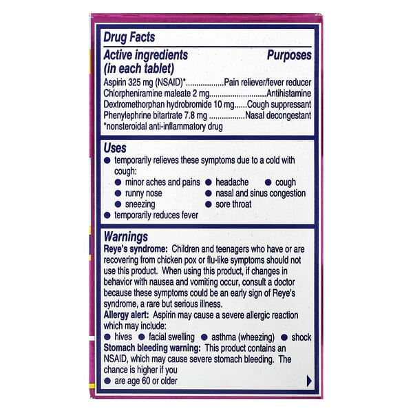 – Cảnh báo về hội chứng Reye: Trẻ em và thanh thiếu niên có triệu chứng cảm lạnh hoặc đang phục hồi từ bệnh thủy đậu hoặc triệu chứng giống cúm không nên sử dụng sản phẩm này.