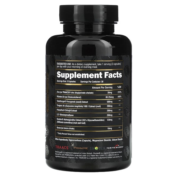 – TestoSurge® Fenugreek Extract: 500 mg. Fenugreek được biết đến với khả năng tăng cường testosterone tự nhiên và cải thiện libido.