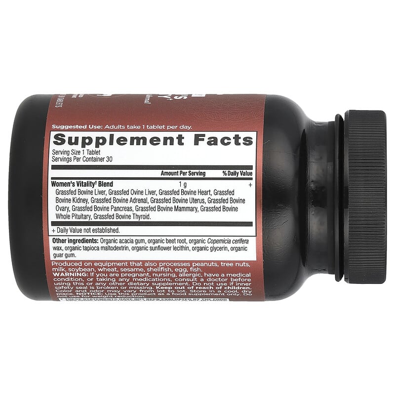 Women’s Vitality† Blend Grassfed Bovine Liver, Grassfed Ovine Liver, Grassfed Bovine Heart, Grassfed Bovine Kidney, Grassfed Bovine Adrenal, Grassfed Bovine Uterus, Grassfed Bovine Ovary, Grassfed Bovine Pancreas, Grassfed Bovine Mammary, Grassfed Bovine Whole Pituitary, Grassfed Bovine Thyroid. | 1 g | + |