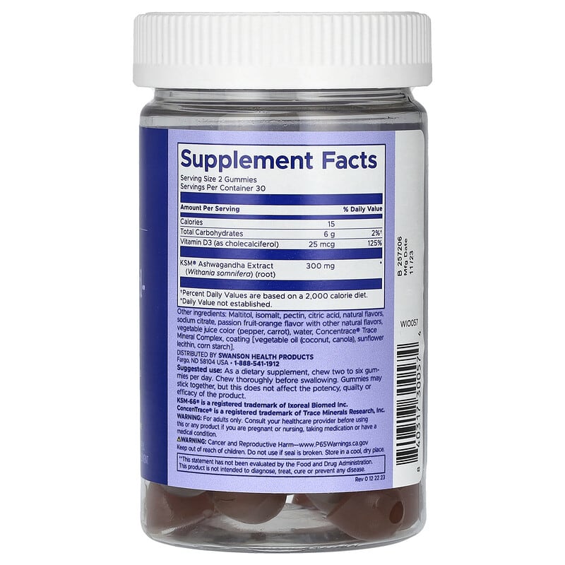Swanson WIO Ashwagand-AHHH chứa các thành phần quan trọng, bao gồm: