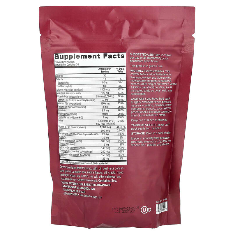 Viên nhai Bariatric Advantage Multi Chewy Bite vị anh đào đen 60 viên, bổ sung vitamin và khoáng chất, hỗ trợ sức khỏe người giảm cân., UPC 755571946553