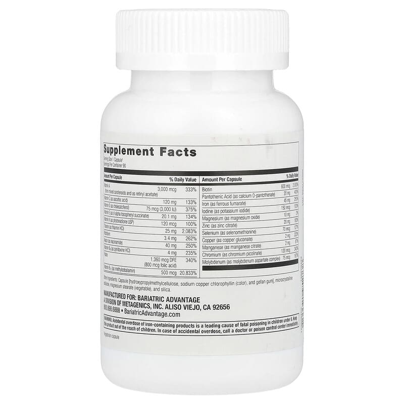 Viên uống Bariatric Advantage Ultra Solo có sắt 90 viên, hỗ trợ sức khỏe, cung cấp dinh dưỡng cần thiết cho người sau phẫu thuật., UPC 755571952738