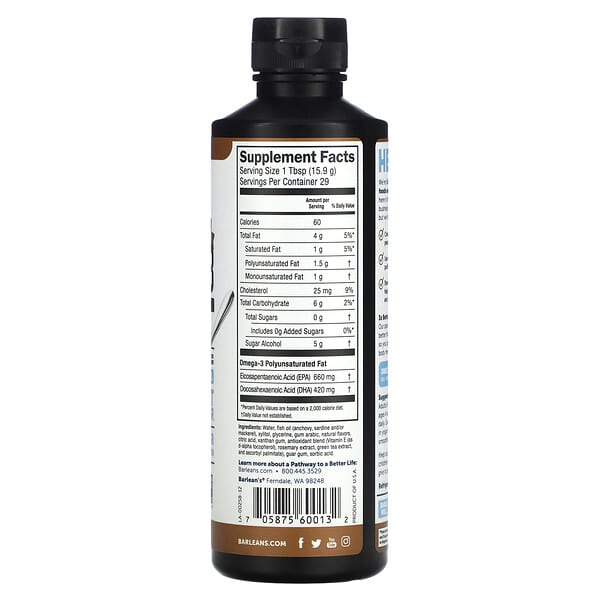 Barlean’s Seriously Delicious Omega-3 từ dầu cá có thành phần chủ yếu bao gồm: