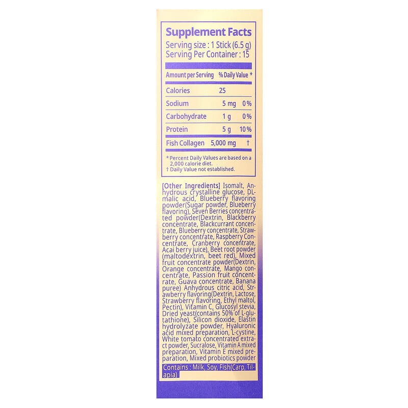 Sản phẩm BB Lab Low Molecular Collagen 5000 Mix Berry chứa các thành phần dinh dưỡng nổi bật sau: