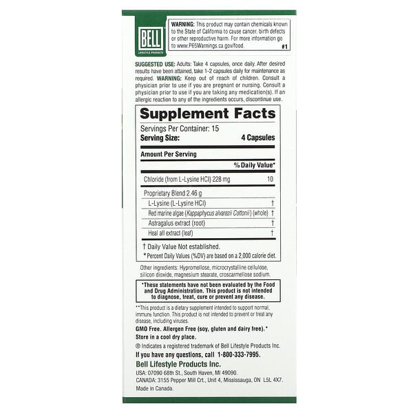 Viên uống Bell Lifestyle Virux hỗ trợ miễn dịch, bảo vệ sức khỏe, nhập khẩu Mỹ, 60 viên, chất lượng cao, an toàn cho người dùng., UPC: 771733110198