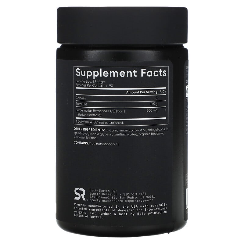 Berberine Sports Research Dầu Dừa 500 mg 90 viên hỗ trợ sức khỏe, tăng cường năng lượng và cải thiện tiêu hóa hiệu quả., UPC 023249092254