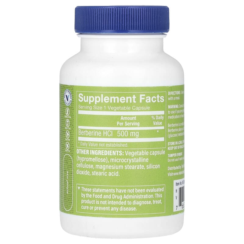 Viên uống Berberine HCl 500 mg giúp hỗ trợ sức khỏe, tăng cường miễn dịch và cải thiện tiêu hóa, 60 viên chay từ The Vitamin Shoppe., UPC 766536035922