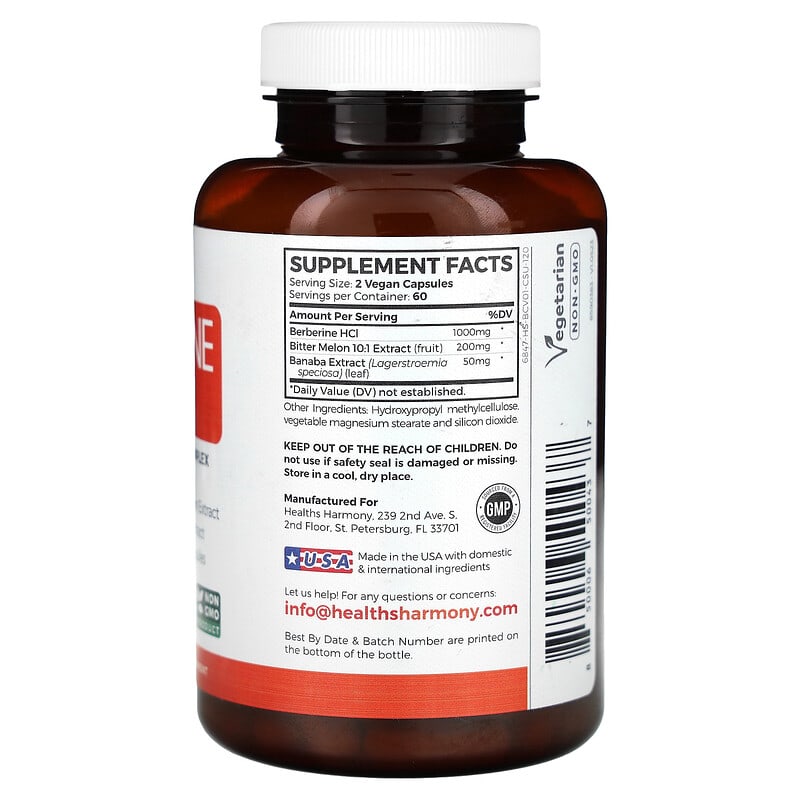 Viên uống Berberine HCL+ Healths Harmony hỗ trợ sức khỏe, kiểm soát đường huyết, 120 viên tiện lợi., UPC 850006500437
