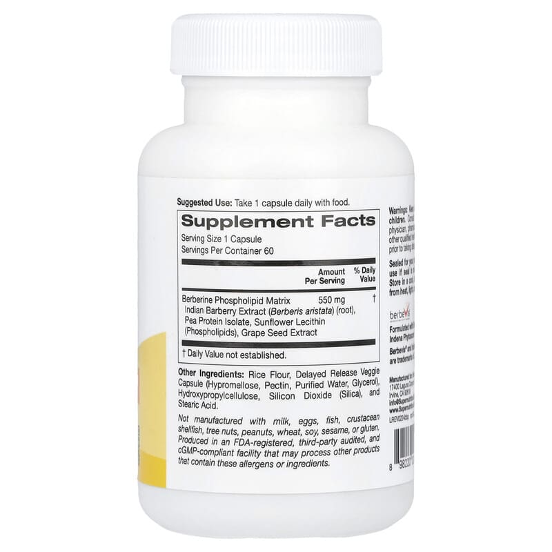 Berberine Phospholipid Matrix Indian Barberry Extract (Berberis aristata) (root), Pea Protein Isolate, Sunflower Lecithin (Phospholipids), Grape Seed Extract | 550 mg | † |
