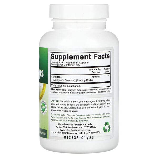 Thông tin sản phẩm Best Naturals, Cordyceps, 750 mg, 120 viên chay