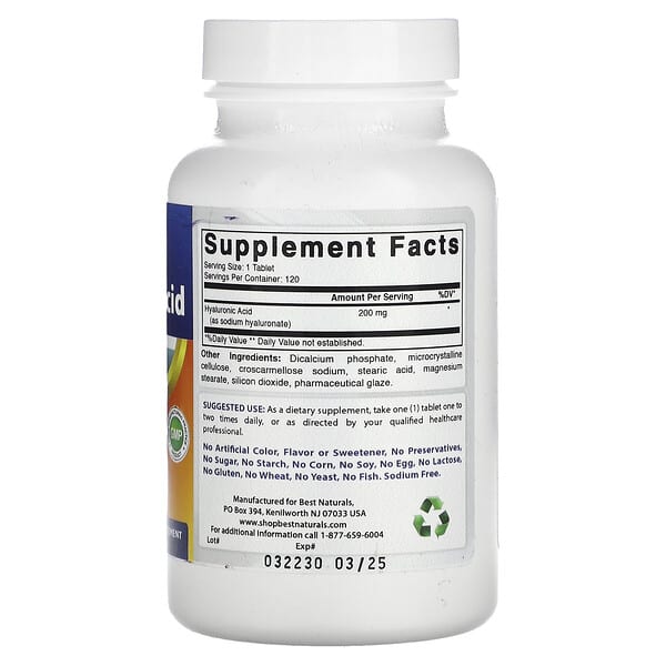 Thông tin sản phẩm Best Naturals, Hyaluronic Acid, 200 mg, 120 viên