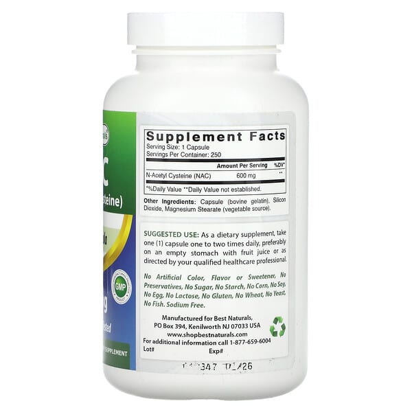 Thông tin sản phẩm Best Naturals, NAC, 600 mg, 250 viên