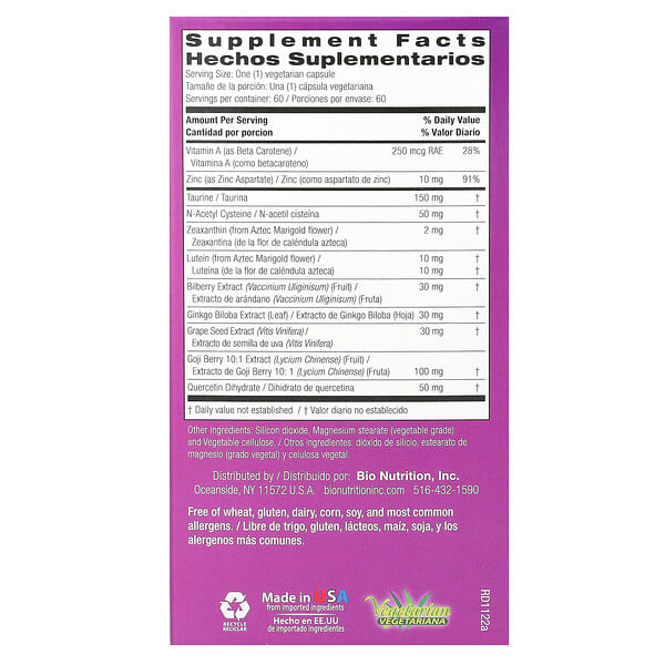 Bio Nutrition, Eye Wellness chứa các thành phần tự nhiên và dinh dưỡng sau: