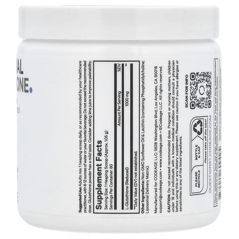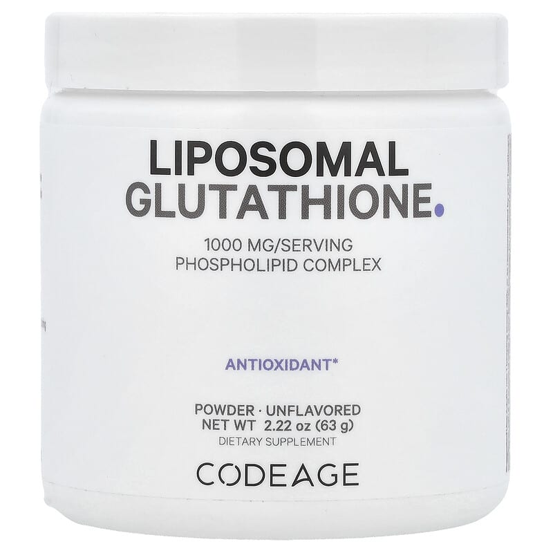 Bột Glutathione Liposomal Không Mùi Codeage 63g giúp tăng cường sức khỏe, làm sáng da và chống oxy hóa hiệu quả., UPC 850049609425