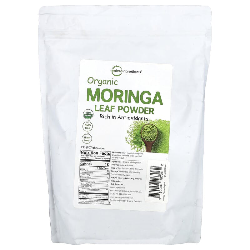 Bột lá Moringa hữu cơ Micro Ingredients 2 lbs, giàu dinh dưỡng, hỗ trợ sức khỏe, nguồn năng lượng tự nhiên, dễ sử dụng cho mọi bữa ăn., UPC 850056167062