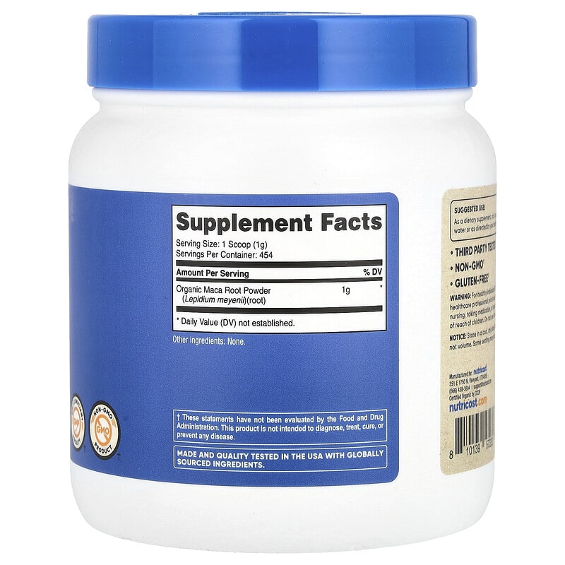 Bột maca hữu cơ Nutricost 454g, tăng cường sức khỏe, hỗ trợ năng lượng và sức bền, phù hợp cho mọi chế độ ăn., UPC 810139572336
