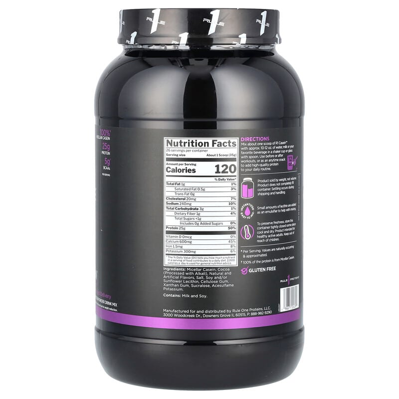 Bột Protein Casein Rule One R1 Hương Chocolate Fudge 910g cung cấp dinh dưỡng tối ưu, hỗ trợ phục hồi cơ bắp hiệu quả., UPC 196671004390