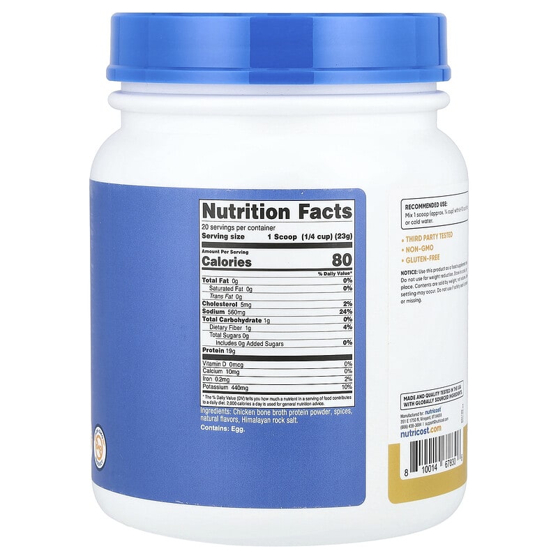 Giới thiệu sản phẩm Nutricost Bone Broth Protein Powder Chicken Soup 1 lb (464 g)