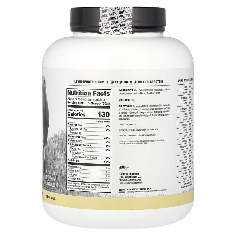 Giới thiệu sản phẩm Levels Grass Fed Whey Protein Powder Vanilla Bean 5 lb (2,27 kg)