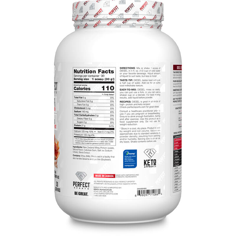 Giới thiệu sản phẩm: PERFECT Sports Diesel New Zealand Whey Isolate Salted Caramel 2 lbs (908 g)