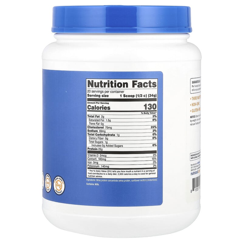 Bột Protein Whey Concentrate Nutricost không mùi vị 1.5 lb cung cấp protein chất lượng cao cho cơ bắp khỏe mạnh., UPC 810139572220