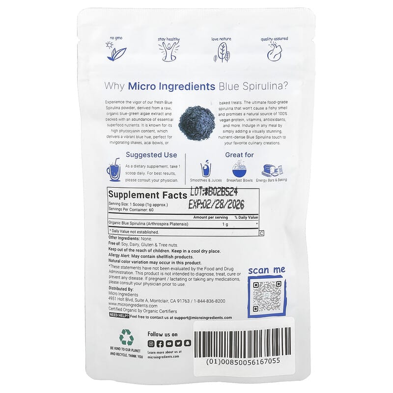 Thành phần của Micro Ingredients Organic Blue Spirulina