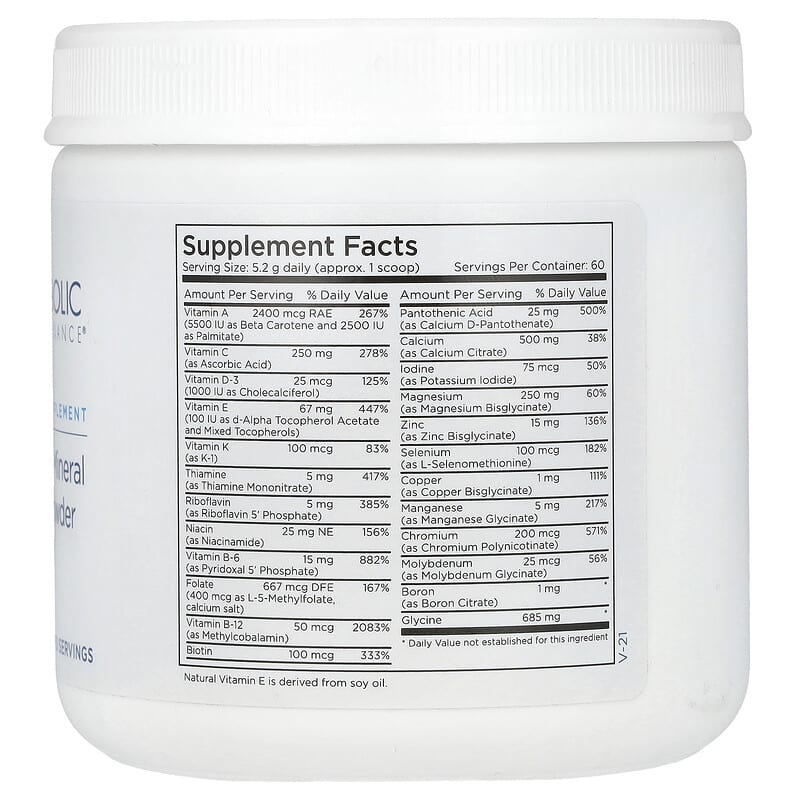 Giới thiệu sản phẩm Metabolic Maintenance Vitamin/Mineral Base Powder 11 oz (312 g)