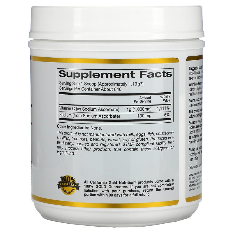 Vitamin C không axit dạng bột 1kg, bổ sung 1000mg Sodium Ascorbate, hỗ trợ sức khỏe miễn dịch, dễ hấp thụ từ California Gold Nutrition. 898220018796