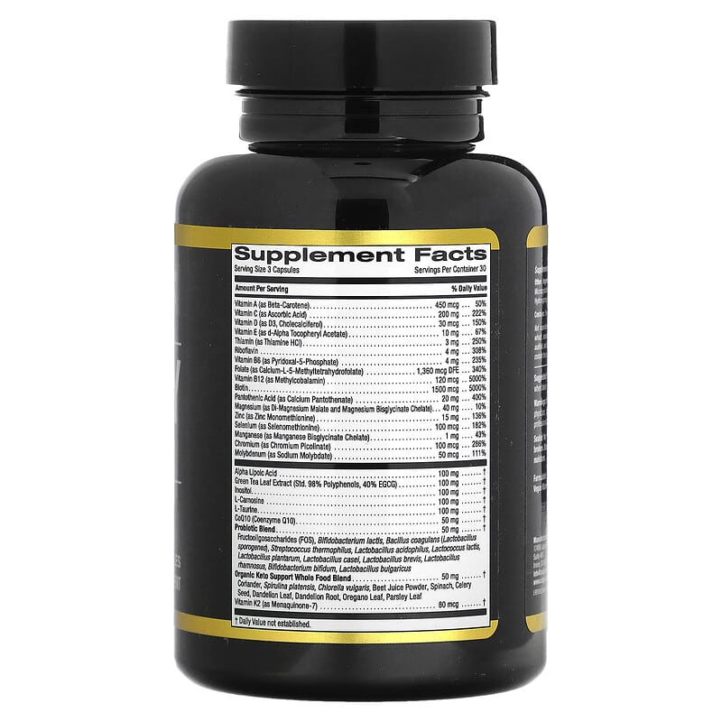 California Gold Nutrition Keto Daily Multi-Vitamins được chế tạo với công thức giàu dinh dưỡng, bao gồm: