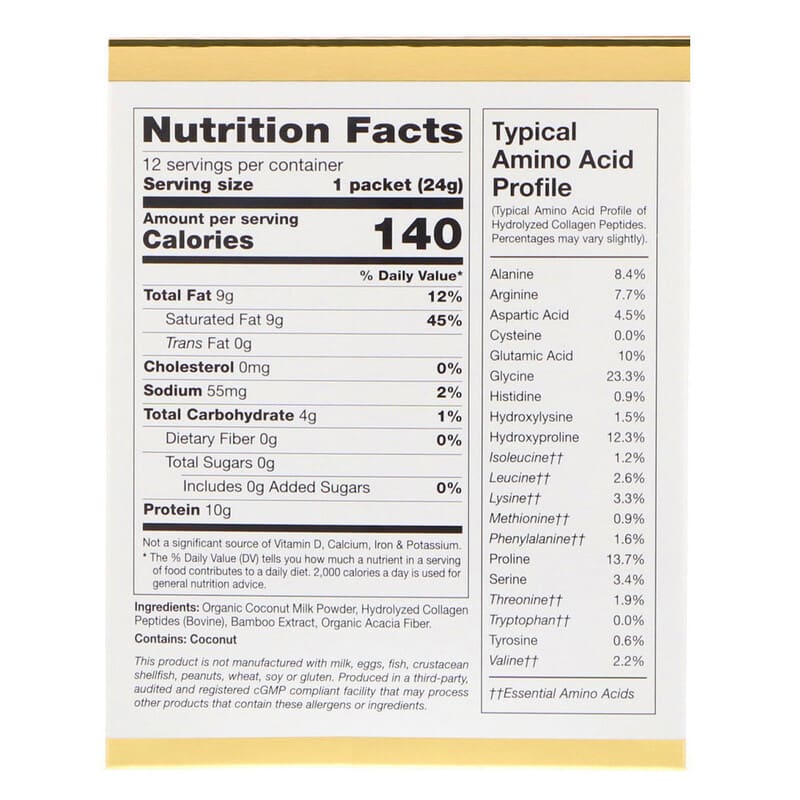 6865 người đã thích Bột kem dừa collagen California Gold Nutrition SUPERFOODS không đường 12 gói 0.85 oz (24 g)/gói
