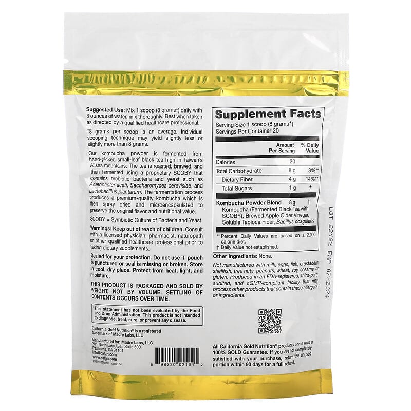 Giới thiệu sản phẩm California Gold Nutrition SUPERFOODS – Kombucha Powder Plus Probiotics 5.64 oz (160 g)