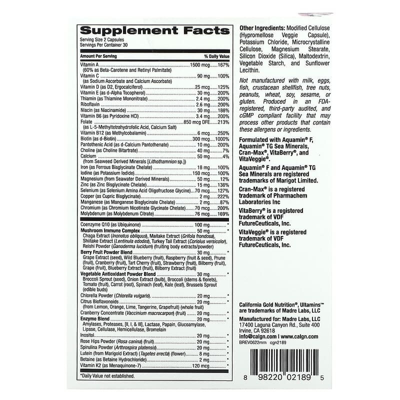 California Gold Nutrition Ultamins Women’s Multivitamin bao gồm: