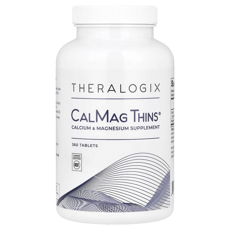 Viên uống CalMag Thins Theralogix hỗ trợ sức khỏe xương, cung cấp canxi và magiê, 360 viên cho sức khỏe tối ưu., UPC 813349010483