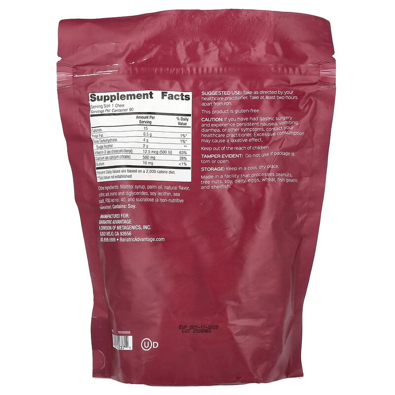 Bariatric Advantage Calcium Citrate Chewy Bite được thiết kế đặc biệt cho những người đã trải qua phẫu thuật bariatric. Sản phẩm mang lại nhiều lợi ích cho sức khỏe, bao gồm: