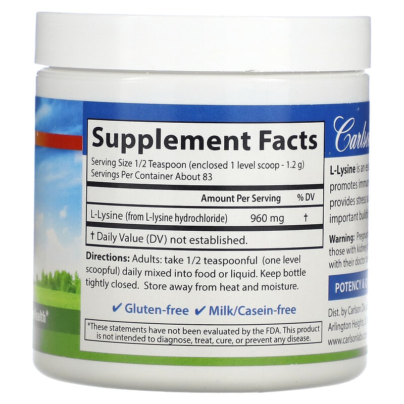 Giới thiệu sản phẩm Carlson L-Lysine Powder 960 mg 3.53 oz (100 g)