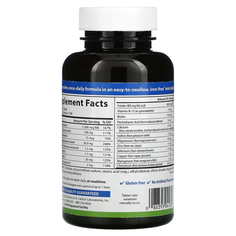 Giới thiệu sản phẩm Carlson Mini-Multi Vitamins & Minerals Iron-Free 180 Mini Tablets