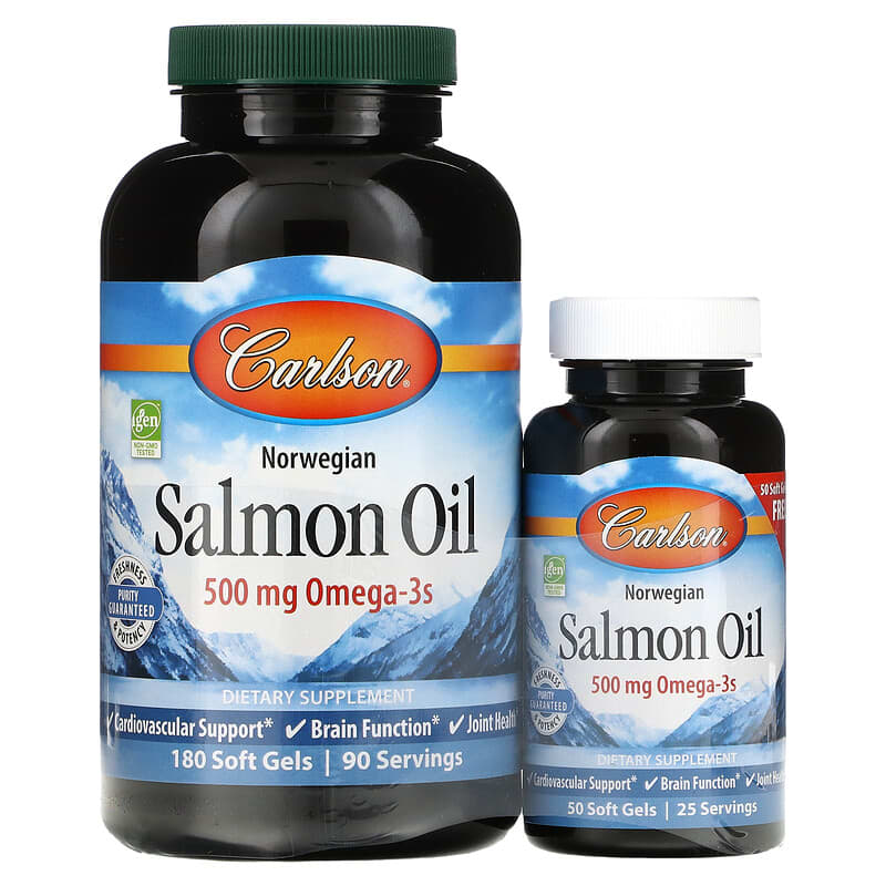 Giới thiệu sản phẩm Carlson Norwegian Salmon Oil 250 mg 180 + 50 Soft Gels
