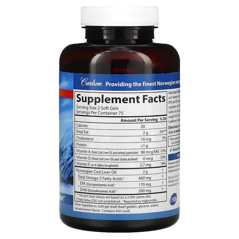 12253 người đã thích Dầu gan cá tuyết tự nhiên Carlson Wild Norwegian Cod Liver Oil Gems hương chanh 460 mg 150 viên nang mềm
