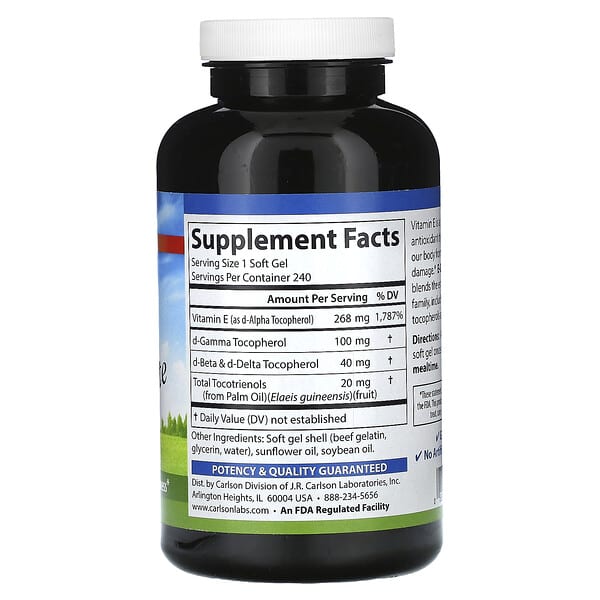 Thông tin sản phẩm Carlson, E-Gems Elite, Vitamin E with Tocopherols & Tocotrienols, 268 mg (400 IU), 240 viên