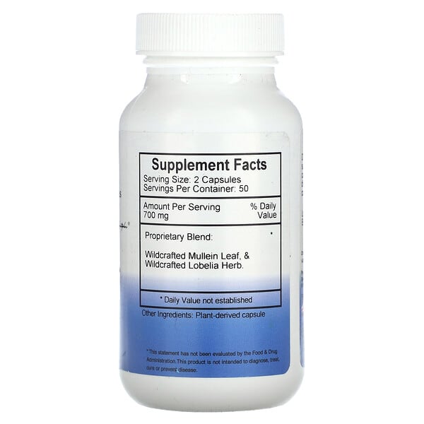 Proprietary Blend: Wildcrafted Mullein Leaf & Wildcrafted Lobelia Herb | 700 mg | * |