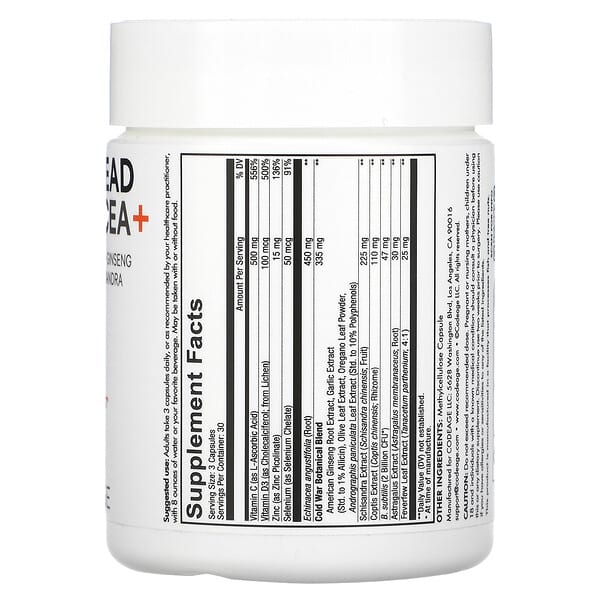 Cold War Botanical Blend American Ginseng Root Extract, Garlic Extract (Std. to 1% Allicin), Olive Leaf Extract, Oregano Leaf Powder, Andrographis paniculata Leaf Extract (Std. to 10% Polyphenols) | 335 mg | ** |