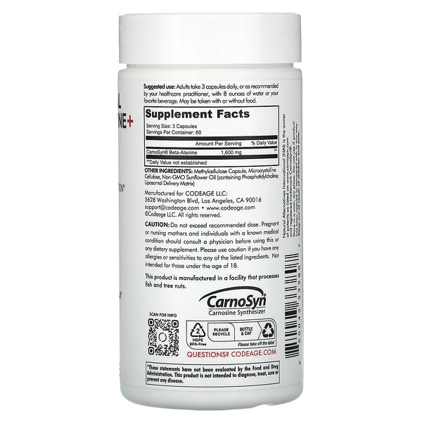 Thông tin sản phẩm Codeage, Liposomal Beta-Alanine+, Centurion, CarnoSyn, Enhanced Absorption, 180 viên