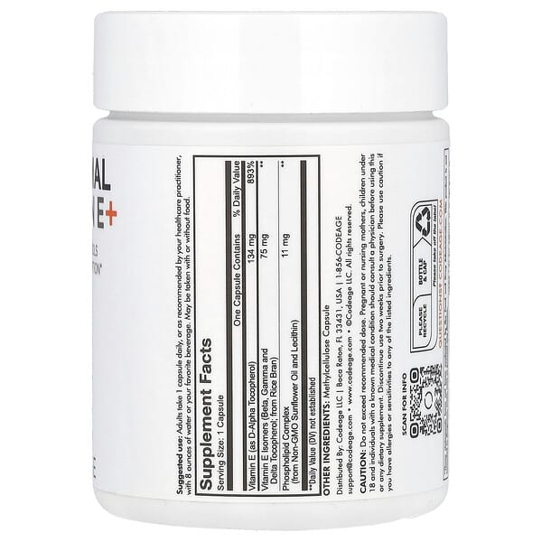 Thông tin sản phẩm Codeage, Liposomal Vitamin E+, 90 viên