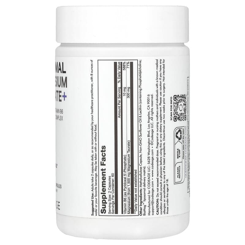 Viên uống Codeage Liposomal Magnesium Taurate+ hỗ trợ sức khỏe tim mạch, giảm căng thẳng, 120 viên chay an toàn., UPC 850049609319