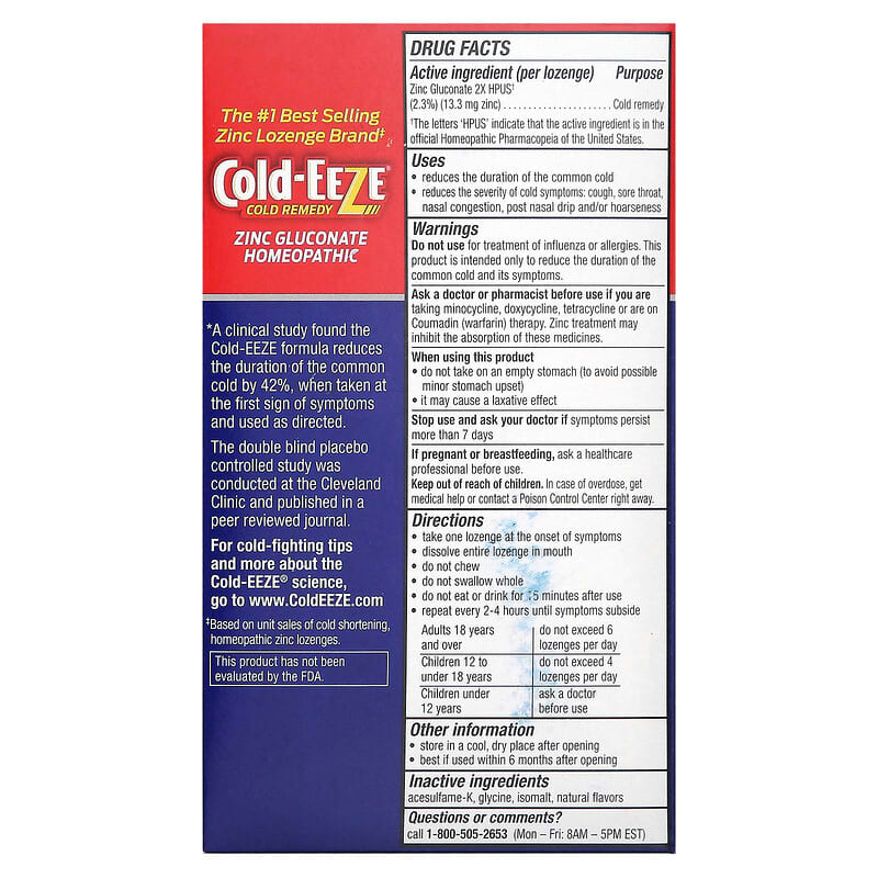 Cold Eeze Cold Remedy được chứng minh lâm sàng là có khả năng rút ngắn thời gian của cảm cúm lên tới 42% khi được sử dụng ngay từ khi có triệu chứng đầu tiên. Sản phẩm không chỉ giúp giảm thời gian mắc bệnh mà còn làm giảm mức độ nghiêm trọng của các triệu chứng cảm cúm như ho, đau họng, nghẹt mũi, chảy mũi sau và khản tiếng.
