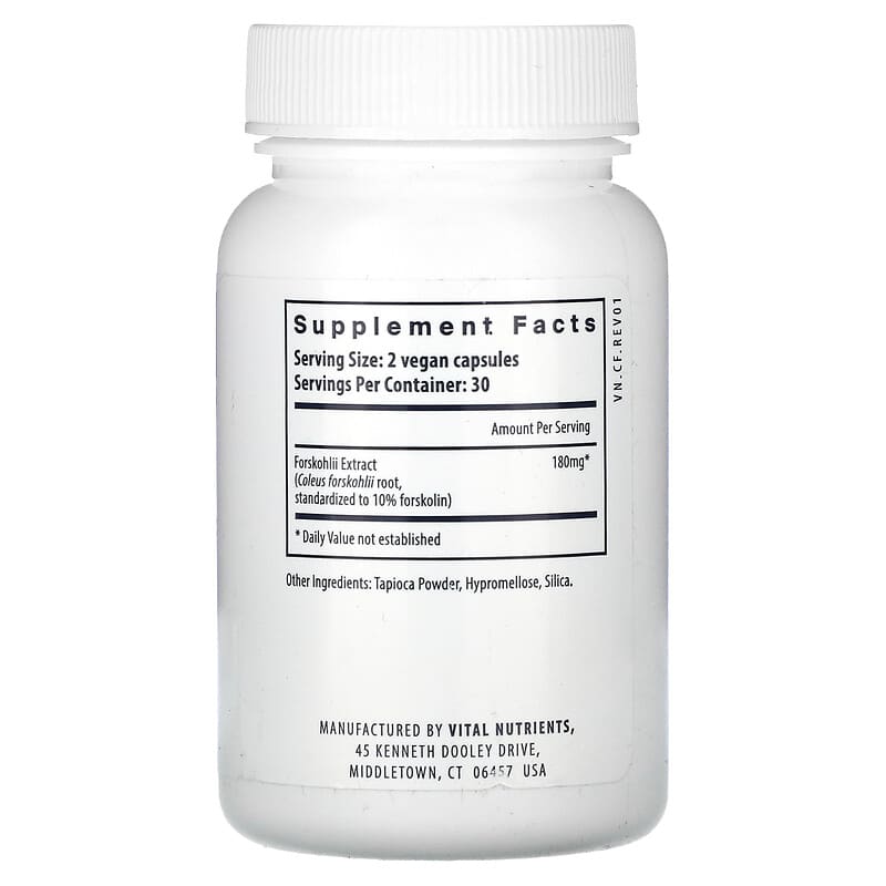 Viên uống Coleus Forskohlii Vital Nutrients hỗ trợ sức khỏe, tăng cường năng lượng, giảm cân hiệu quả, 60 viên tiện lợi., UPC 693465207116