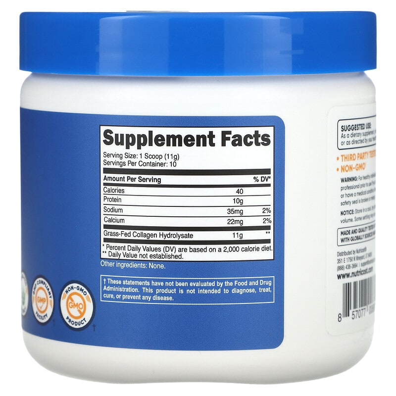 Collagen từ bò cỏ Nutricost không vị 113g, hỗ trợ sức khỏe da, tóc, móng, dễ dàng pha trộn vào đồ uống yêu thích., UPC 857077008800