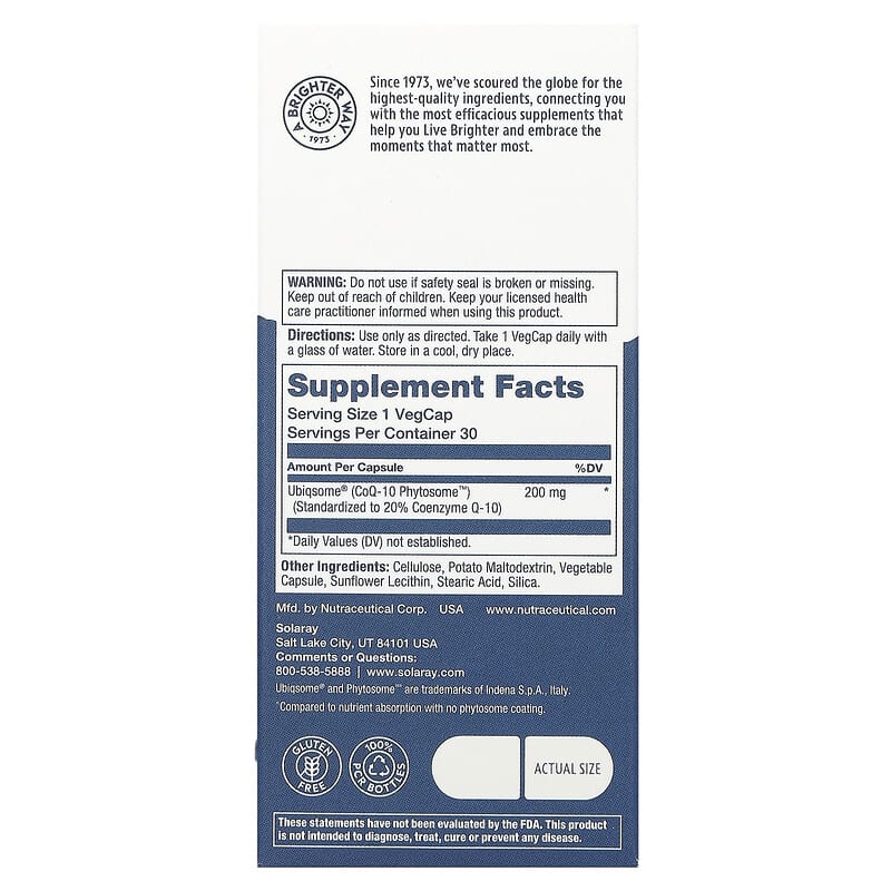 Giới thiệu sản phẩm Solaray COQ-10 Phytosome 30 viên